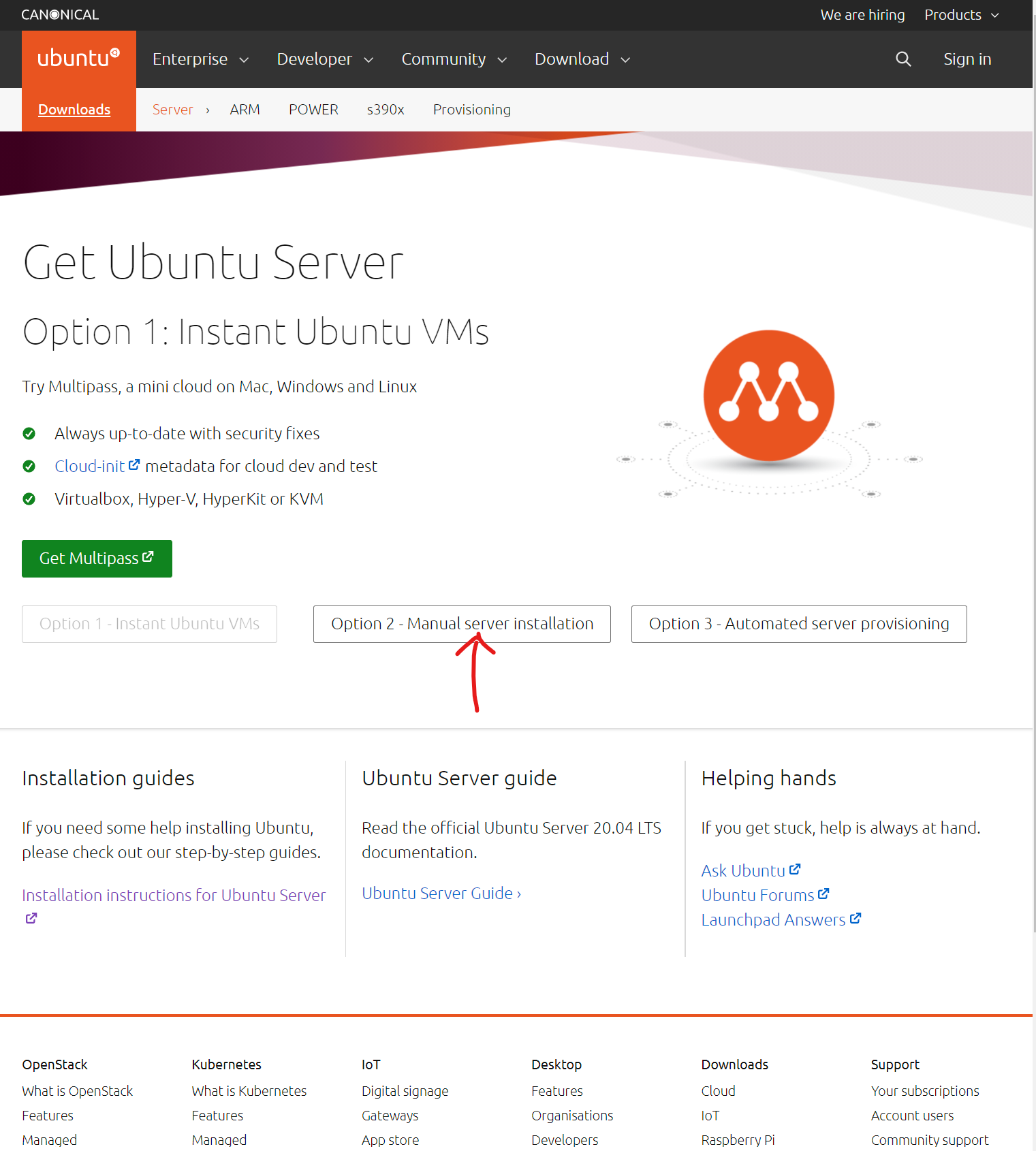 注意!它官网具有很大迷惑性!一定要选择Option 2才可以进入服务器下载界面!