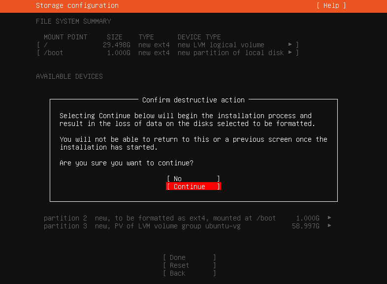 分区啥的,我也保持默认了。有需要自己调整一下。然后就是,毁灭性操作!其实就是安装啦,