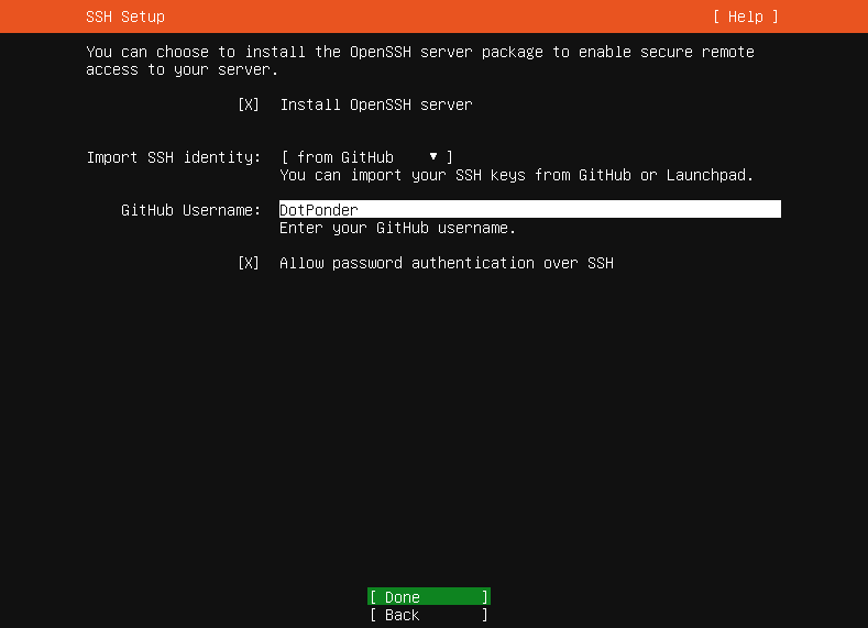 我使用远程终端连接,所以我要安装OpenSSH server,方便我使用WindowsTerminal等,我选择从GitHub上导入我已经有的SSH身份,这样我在主系统使用ssh连接也没什么问题啦!那个,不用其实也是可以的,只是这样对我来说方便一点。不怎么用GitHub的话,就别弄了。但OpenSSH最好还是装上!后面Hadoop集群运算还是要的!
