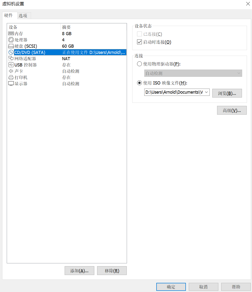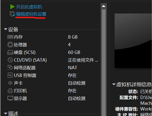 首先,要编辑虚拟机设置,把安装镜像磁盘加入到虚拟光驱