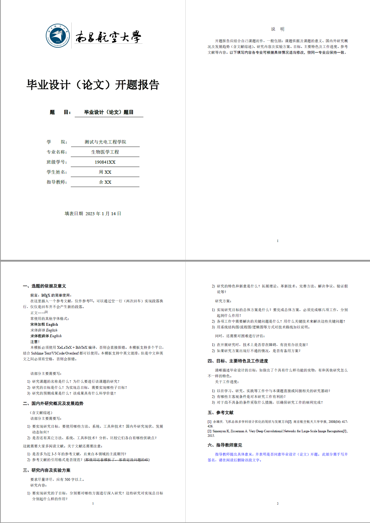 为了方便南昌航空大学本科生毕业设计相关文件的编写,减少重复劳动,提高效率,我编写了四个LaTex模板。