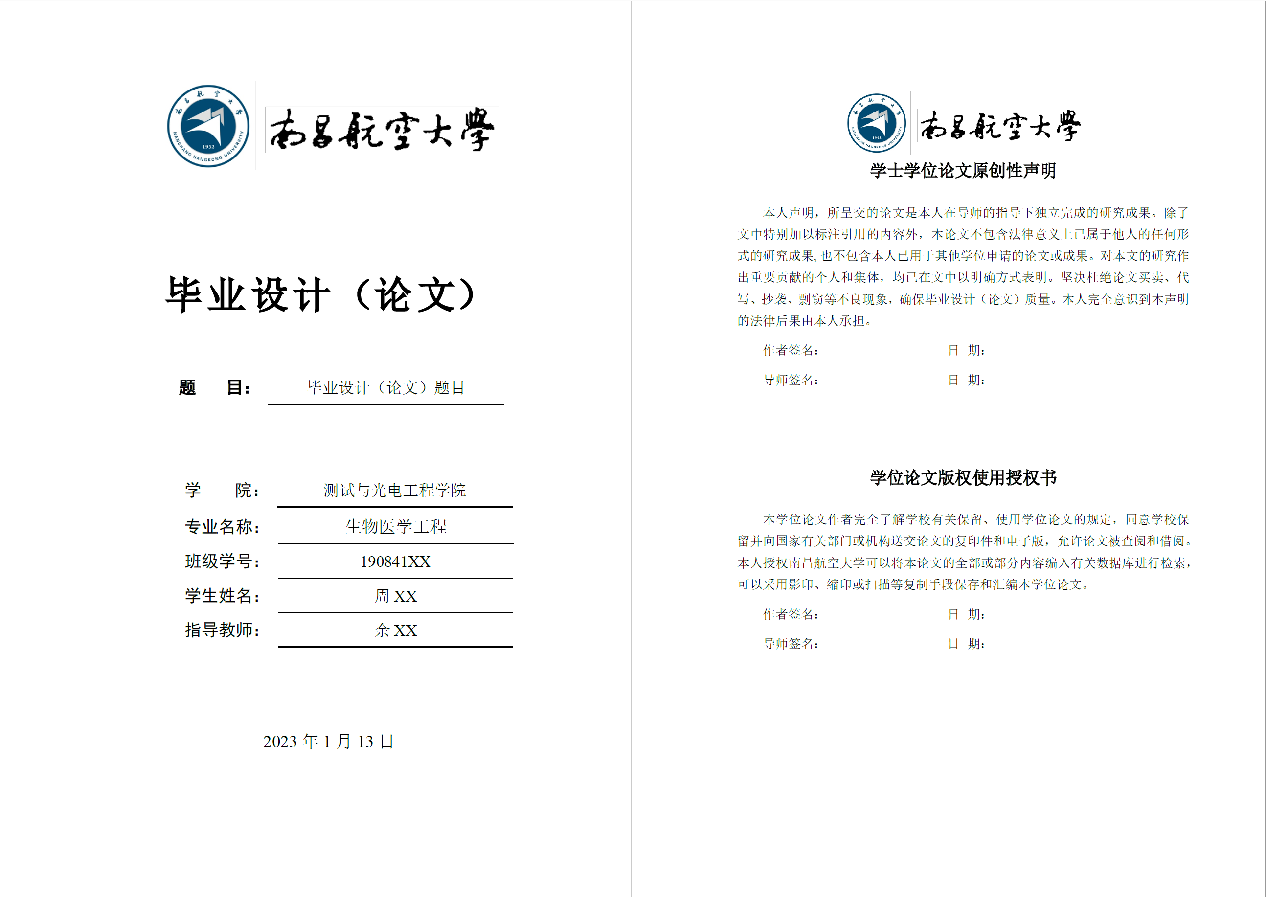 南昌航空大学本科生毕业设计相关文件LaTex模板